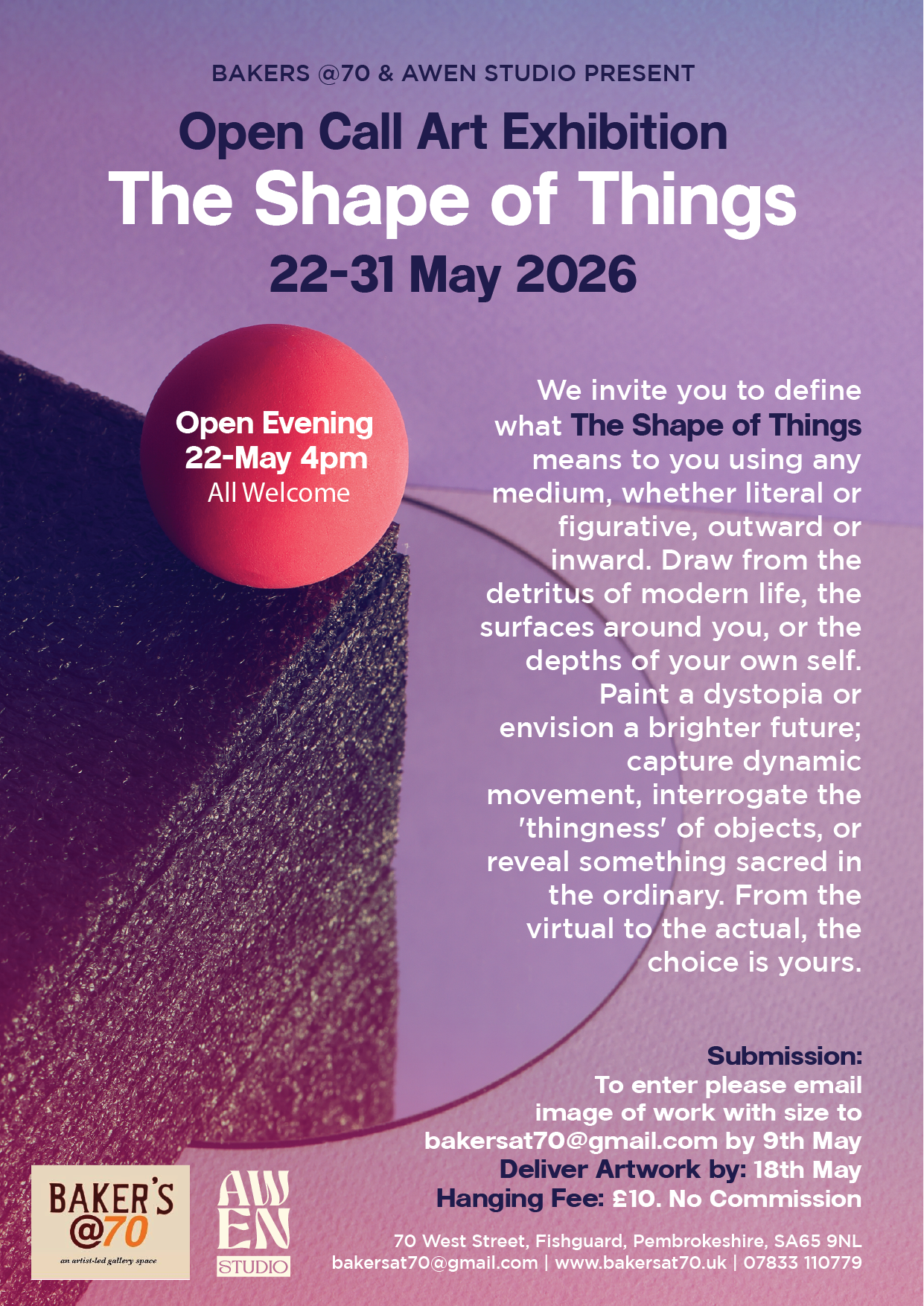 Submission:To enter please email image of work with size tobakersat70@gmail.com by 9th May